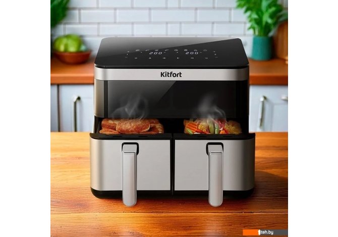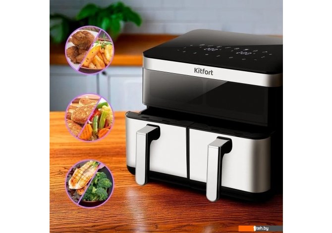| Информация | - Аэрогриль КТ-8110 – это идеальное устройство для приготовления разнообразных блюд без масла, сохраняя их сочность и создавая аппетитную хрустящую корочку. С ним вы сможете наслаждаться вкусной едой без лишних жиров. - Устройство оснащено сенсорным управлением и 8 режимами приготовления, а также функцией поддержания температуры. Эти режимы предлагают готовые настройки, специально разработанные для различных блюд, что позволяет вам не беспокоиться о процессе готовки! - Одним из главных преимуществ аэрогриля является наличие 2 нагревателей и 2 поддонов, что позволяет одновременно готовить 2 блюда с индивидуальными настройками. Функция синхронизации времени окончания приготовления гарантирует, что всё будет готово к одному времени. - Для приготовления используются специальные решётки, которые устанавливаются на поддоны. Они имеют антипригарное покрытие, что предотвращает прилипание продуктов. Поддоны и решётки легко извлекаются и моются. - Благодаря системе циркуляции горячего воздуха, продукты равномерно обжариваются со всех сторон, что обеспечивает нежные и хорошо пропечённые блюда. В аэрогриле продукты практически не пригорают, если правильно выбрать температуру и время приготовления. - Не упустите возможность готовить вкусно и полезно! |
