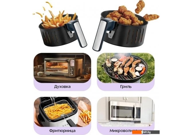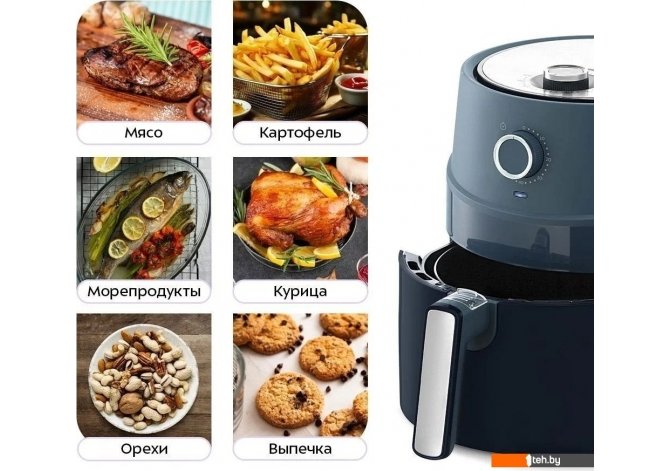 | Информация | Современный аэрогриль КТ-8118 позволяет готовить большинство продуктов без добавления масла, при этом они получаются сочными и с хрустящей корочкой, главное правильно подобрать время приготовления. |