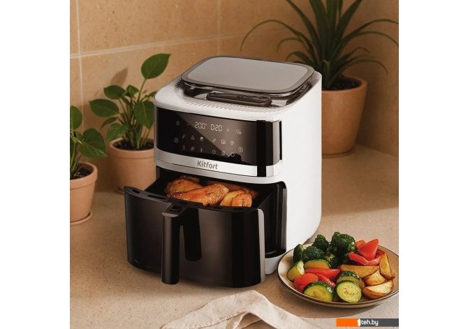 | Информация | -Аэрогриль Kitfort КТ-8151 – это современное устройство для здорового и вкусного приготовления пищи с минимальным добавлением масла. Благодаря инновационной технологии циркуляции горячего воздуха продукты получаются сочными внутри и с аппетитной хрустящей корочкой, а встроенная функция приготовления с паром позволяет готовить блюда, сохраняя их нежными и мягкими. -Прибор оборудован вместительным резервуаром для воды на 1.55 литра, который подает воду в бойлер с помощью помпы. Это обеспечивает возможность готовки на пару, сохраняя витамины и полезные микроэлементы в продуктах. Устройство поддерживает семь автоматических программ, три из которых используют пар, что делает процесс максимально удобным и эффективным. -Сенсорная панель управления и широкий диапазон температур от 80 до 200°C позволяют легко подобрать оптимальные настройки для разных блюд. Блюда готовятся равномерно благодаря мощному вентилятору, а антипригарное покрытие поддона и решетки обеспечивает легкую очистку после использования. -Аэрогриль продуман до мелочей:контейнер для сбора жидкости и отдельный отсек для конденсата защищают поверхность вокруг прибора от влаги, а воздухоотводные отверстия требуют оставлять свободное пространство для безопасной эксплуатации. Компактные размеры и стильный дизайн делают Kitfort КТ-8151 отличным выбором для любой кухни. |