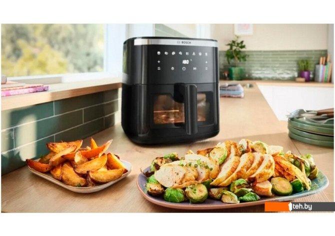 | Информация | - Аэрофритюрница Bosch MAF671B0 - это современное устройство, предназначенное для приготовления блюд с минимальным количеством масла благодаря технологии циркуляции горячего воздуха. Благодаря объему чаши 7.2 литра, вы сможете приготовить большие порции еды для всей семьи или компании гостей, что делает ее отличным выбором для домашних кулинарных экспериментов. - Корпус устройства выполнен из прочного пластика, а внутреннее покрытие чаши обладает антипригарными свойствами, что облегчает очистку после приготовления и исключает пригорание продуктов. Максимальная температура приготовления достигает 200 °С, что позволяет готовить широкий спектр блюд — от хрустящего картофеля фри до сочного мяса и овощей. - Для удобства пользователя предусмотрено сенсорное управление и наличие 8 автоматических программ, что делает использование прибора максимально простым и интуитивно понятным. Вы без труда сможете выбрать нужный режим и оптимальные параметры приготовления без лишних усилий. - Bosch MAF671B0 отличается стильным черным цветом, компактными размерами (31.4 x 30.9 x 38.8 см) и весом 5.7 кг, что позволяет легко разместить ее на кухне. Устройство произведено в Китае и поставляется с официальной гарантией 24 месяца, обеспечивая надежность и долгий срок службы. |