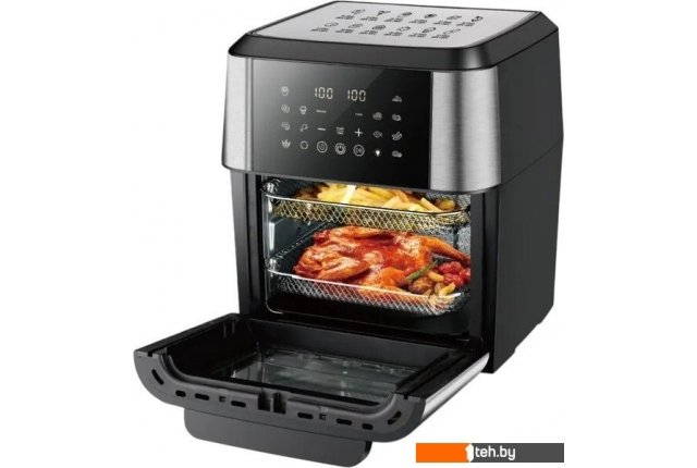 | Информация | -Ключевые характеристики Аэрогриль предназначен для быстрого и равномерного приготовления различных блюд без использования масла. Прибор оснащён мощным нагревательным элементом 2000 Вт и вместительной чашей объемом 12 литров, что позволяет готовить большие порции за один цикл. Сенсорное управление обеспечивает удобство настройки всех параметров для оптимального результата. -Преимущества и отличия В модели реализованы функции автоотключения и регулировки температуры, что способствует безопасной эксплуатации и точному контролю процесса готовки. В комплекте идут противень, сетчатый противень и вертел, что расширяет возможности приготовления – от запекания до обжаривания на гриле. -Практичность Прибор оснащён сенсорной панелью управления, что облегчает выбор нужных режимов и установку температуры. Благодаря большому объёму аэрогриль подходит для семейного использования и приготовления праздничных блюд. Наличие автоотключения минимизирует риск перегрева и повышает безопасность. -Уникальность В конструкции используется металлический ТЭН, что гарантирует долговечность и равномерный нагрев. Комплектация дополнительными аксессуарами позволяет экспериментировать с разными рецептами, а сенсорное управление добавляет современности и простоты в эксплуатации. Читать дальше |