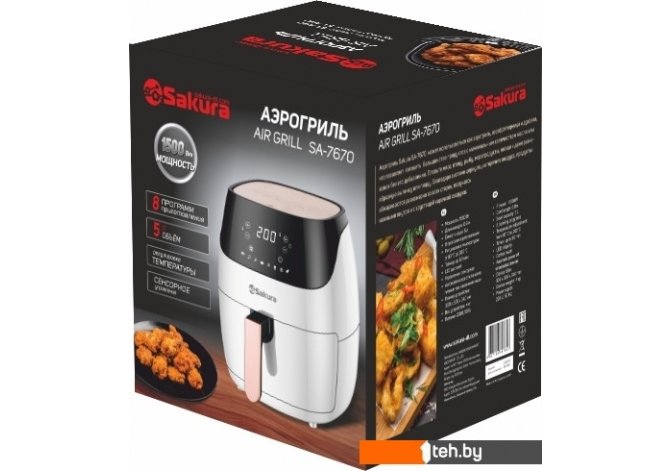 | Информация | ? Аэрогриль Sakura SA-7670 - это мощное устройство мощностью 1500 Вт с чашей объемом 5,0 л и антипригарным покрытием. ? С таймером на 60 минут и регулировкой температуры от 80 до 200С, этот аэрогриль обеспечивает точное приготовление блюд. ? Сенсорное управление и LED дисплей делают использование устройства удобным и интуитивно понятным. ? Автоматическое отключение питания при извлечении корзины обеспечивает безопасность использования. ? С 8 предустановленными программами меню этот аэрогриль подходит для приготовления разнообразных блюд без масла или с минимальным его использованием. ? Подходит для всех блюд, которые готовятся в духовке, этот аэрогриль Sakura SA-7670 станет незаменимым помощником на вашей кухне. |