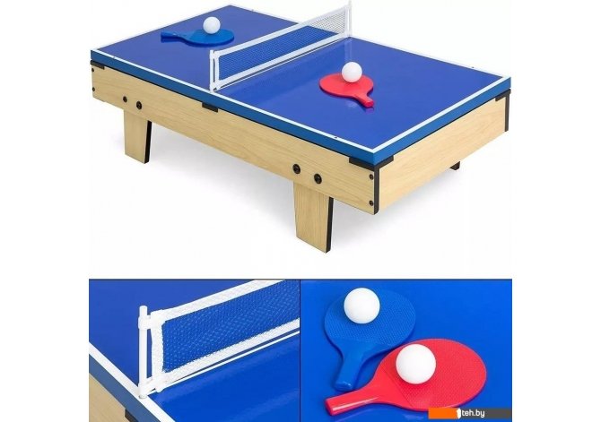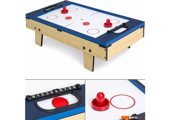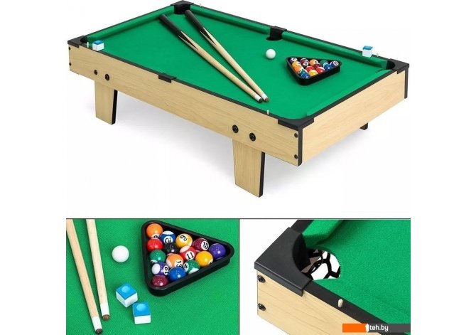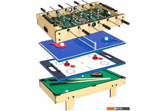 | Комплектация | бита (2 шт.), шайба, кий (2 шт.), бильярдный шар (16 шт), треугольник, мел, ракетка (2 шт.), мяч (для тенниса, для футбола) |