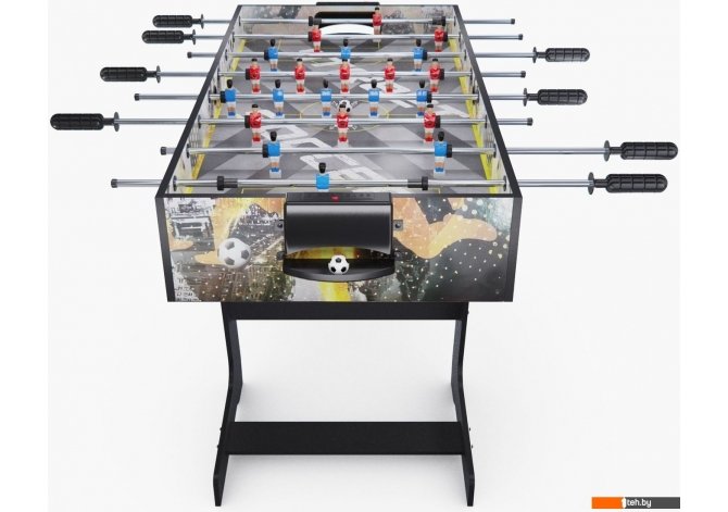 | Информация | Игровой стол Concrete Roots выполнен из прочного материала — МДФ, который гарантирует стабильность и надежность конструкции. Толщина в 12 миллиметров со стороны игроков и с боковых сторон обеспечивает прочность и устойчивость к повреждениям. Ламинированное ПВХ покрытие игрового поля придает столу привлекательный вид и повышает его износостойкость. Размеры игрового поля составляют 117?58 см, а его толщина 4.2 мм, что делает игру комфортной и захватывающей. Благодаря складной конструкции стол легко сложить и убрать в целях экономии пространства дома. В комплекте с настольным футболом вы получите два футбольных мяча диаметром 31 мм, которые обеспечат реалистичность игры, и механический счетчик для подсчета очков. Стержни диаметром 13 мм уже в сборе с игроками высотой 77 мм. Ножки толщиной 15 мм, перекладина между ножками толщиной 12 мм. |