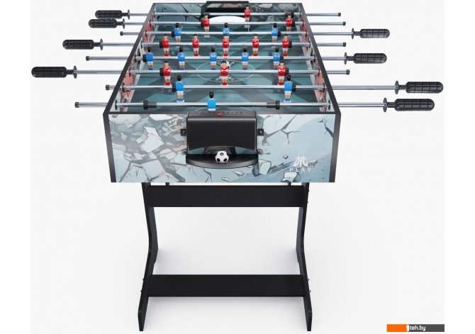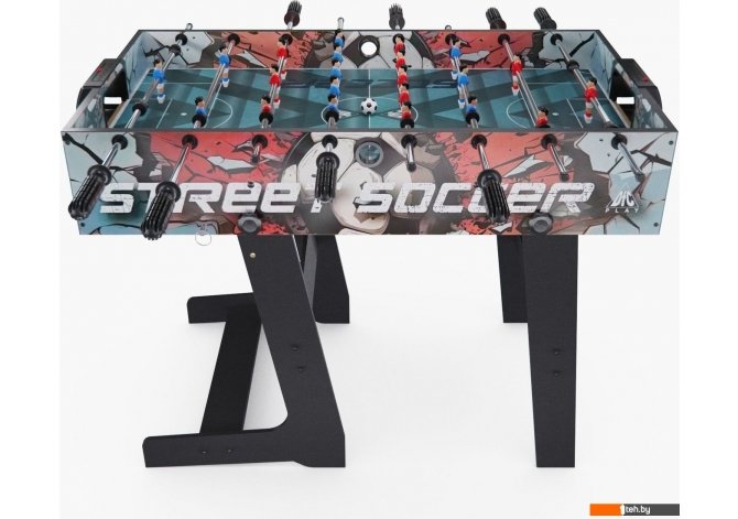 Информация | Игровой стол Street Soccer выполнен из прочного материала — МДФ, который гарантирует стабильность и надежность конструкции. Толщина в 12 миллиметров со стороны игроков и с боковых сторон обеспечивает прочность и устойчивость к повреждениям. Ламинированное ПВХ покрытие игрового поля придает столу привлекательный вид и повышает его износостойкость. Размеры игрового поля составляют 104?58 см, а его толщина 3 мм, что делает игру комфортной и захватывающей. Благодаря складной конструкции стол легко сложить и убрать в целях экономии пространства дома. В комплекте с настольным футболом вы получите два футбольных мяча диаметром 31 мм, которые обеспечат реалистичность игры, и механический счетчик для подсчета очков. Стержни диаметром 13 мм уже в сборе с игроками высотой 77 мм. Ножки толщиной 15 мм, перекладина между ножками толщиной 12 мм. |