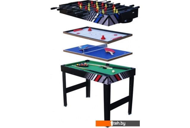 | Комплектация | бита (2 шт), бильярдный шар (набор), сетка, кий (2 шт), треугольник, щетка, шайба (2 шт), ракетка (2 шт), шар (2 шт), мел (2 шт) |