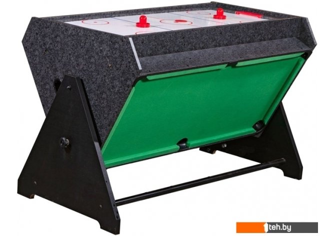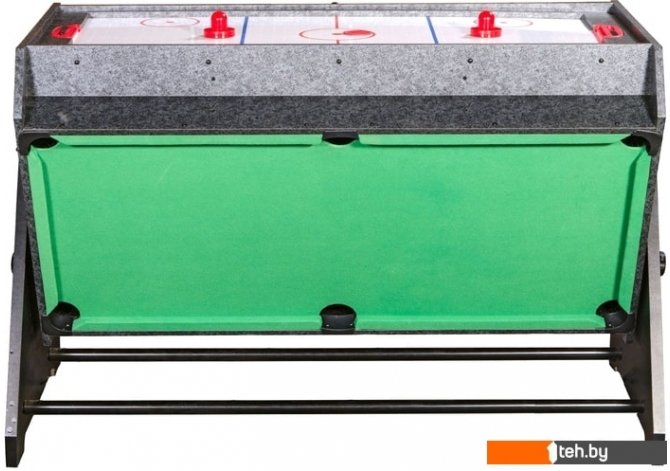 | Информация | Трансформер с необычным дизайном револьверного типа Vortex 3-в-1 одинаково понравится как детям, так и взрослым!Компактные размеры стола позволят комфортно разместить его даже в небольшом помещении.Ведь помимо необычного дизайна и отличных игровых качеств у него есть еще одно важное достоинство - возможность выбора.В зависимости от настроения Вы сможете провести на нем тренировку по пулу или сразиться в футбол или аэрохоккей с лучшим другом - достаточно просто повернуть стол вокруг оси и наслаждаться новой игрой.1. Пул (игровая поверхность 120 х 51 см, толщина МДФ 4,75 мм):Набор шаров диаметром 38,1 ммКии 91,5 см - 2 штМел – 2 штПластиковый треугольникЩетка для чистки сукна2. Аэрохоккей (игровая поверхность 110 х 51 см, толщина МДФ 3,2 мм, снабжена вентилятором, питание от сети 220В):Биты – 2 штШайбы – 2 шт3. Кикер (игровая поверхность 104 х 55,3 см, толщина МДФ 3,2 мм): Мячи – 2 шт |