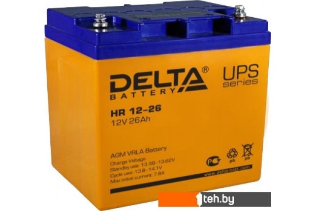Фотографии, описание и технические характеристики модели Delta HR 12-26 (12В/26 А·ч) взяты из открытых источников, официального сайта производителя или представительства Delta в Республике Беларусь.