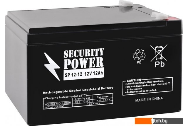 Фотографии, описание и технические характеристики модели Security Power SP 12-12 F1 (12В/12 А·ч) взяты из открытых источников, официального сайта производителя или представительства Security Power в Республике Беларусь.