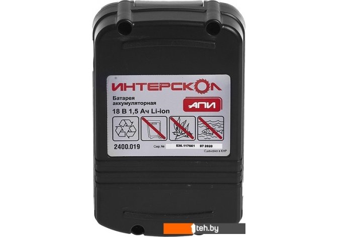 Фотографии, описание и технические характеристики модели Интерскол АПИ-1.5/18 2400.019 (18В/1.5 Ач) взяты из открытых источников, официального сайта производителя или представительства Интерскол в Республике Беларусь.