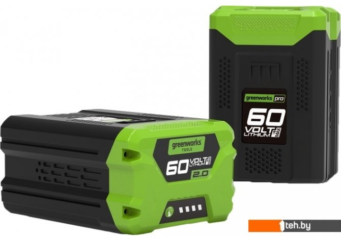 Фотографии, описание и технические характеристики модели Greenworks G60B2 (60В/2 Ah) взяты из открытых источников, официального сайта производителя или представительства Greenworks в Республике Беларусь.