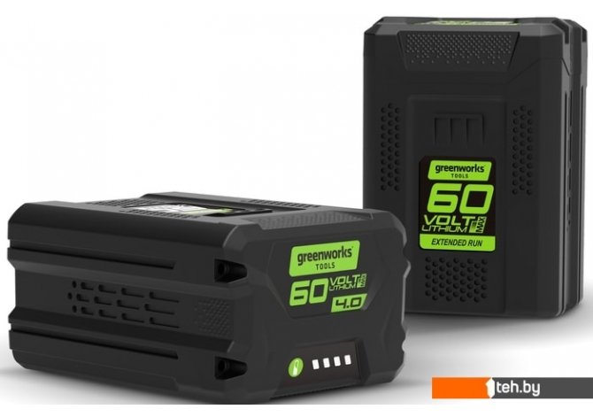Фотографии, описание и технические характеристики модели Greenworks G60B4 (60В/4 Ah) взяты из открытых источников, официального сайта производителя или представительства Greenworks в Республике Беларусь.