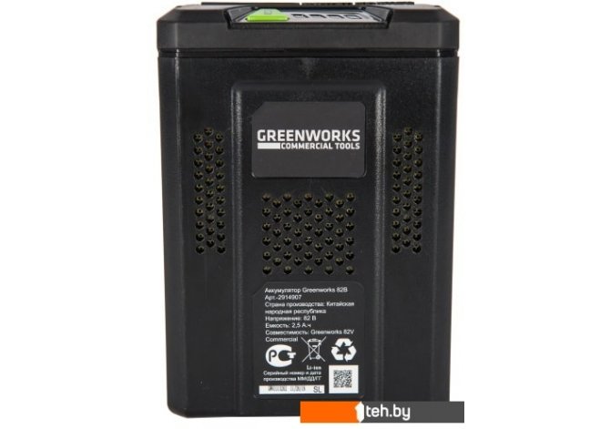Если хотите купить Greenworks G82B2 (82В/2.5 Ah) то следует уточнить все параметры и габариты модели перед покупкой. Представленые характеристики на сайте 1teh.by могут отличаться от действительных или указанных производителем. Описание, фото товара и технические характеристики представлены для справки.