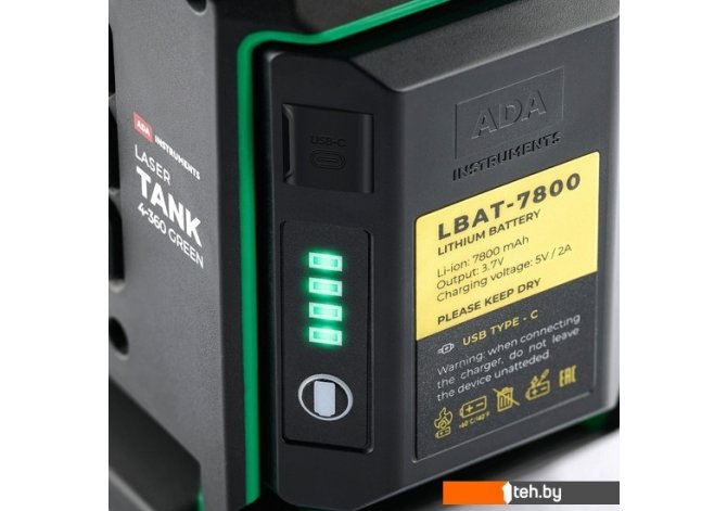 | Информация | ? Аккумулятор LBAT-7800 предназначен для питания лазерных уровней LaserTank 3-360 Green и LaserTank 4-360 Green. ? Разъем для подключения зарядного устройства type-C. ? Уровень заряда отображается на светодиодном индикаторе. ?? Частое мигание одного индикатора предупреждает об максимальном разряде и необходимости зарядить аккумулятор в кратчайшее время. |