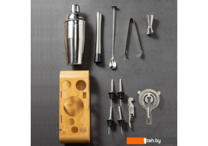 | Состав набора | гейзер, джиггер, ложка, мадлер, подставка, стрейнер, шейкер, штопор, щипцы для льда |