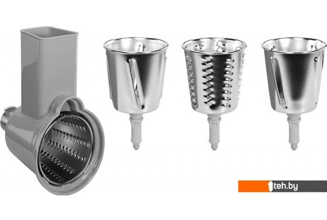 | Комплектация | - корпус (пластик) с ключом для замены барабанов (нержавеющая сталь);- толкатель (пластик);- 4 барабана из нержавеющей стали для натирания и нарезки: крупная и мелкая терка, средняя и мелкая нарезка (нержавеющая сталь). |