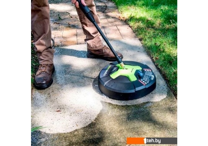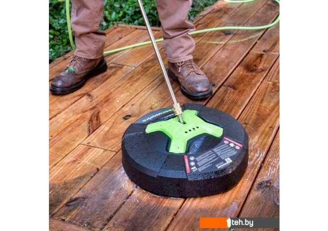 | Информация | Насадка для очистки террас 38 см (15") для мойки высокого давления Greenworks. Отлично подходит для мытья пола в гараже, дорожек из бетона и плитки, мытья патио. Крепится к универсальному разъему быстрого соединения 1/4 дюйма на трубке пистолета. Внутри конструкции находятся два сопла на вращающемся коромысле. Обеспечивается равномерное мытье без полос и пятен. |