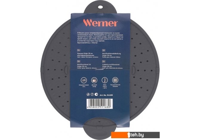 | Информация | ? В ваших руках непревзойденный помощник на кухне: силиконовый экран Werner Grigio 51168. ? Используйте его для приготовления продуктов на пару, в духовом шкафу, защиты от брызг во время жарки, для слива лишней жидкости из кастрюли и в качестве подставки под горячее. |