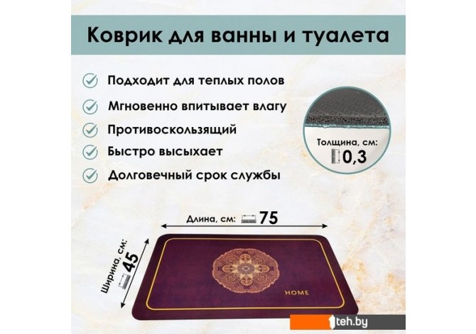 | Информация | ??Текст описания составлен при помощи искусственного интеллекта. ? Коврик для ванной Zalel 45x75 / GZN-077 - отличный выбор для вашей ванной комнаты. ? Изготовлен из высококачественного полиэстера и резины, что делает его прочным и долговечным. ? Его прямоугольная форма и размеры 45x75 см идеально подходят для размещения на полу в ванной комнате. ? Коврик украшен стильным рисунком, который добавит уют и элегантность в ваш интерьер. ?? Поддерживайте коврик в чистоте, регулярно стирая его вручную или в стиральной машине. |