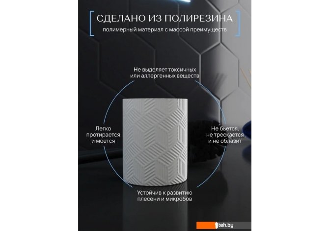 | Информация | - Ершик для унитаза создан из экологически чистого и прочного полирезина, качественного пластика и металла. Его стильная колба и эргономичная ручка идеально вписываются в интерьер современной ванной комнаты и обеспечивают долговечность использования. - Преимущества: - Изготовлен из прочного материала, ручка устойчива к коррозии. - Непористая структура полирезина предотвращает развитие бактерий. - Легкий в уходе, просто моется, что гарантирует чистоту и гигиеничность. - Современный стиль и возможность сочетания с элементами той же коллекции делают его частью гармоничной композиции. - |