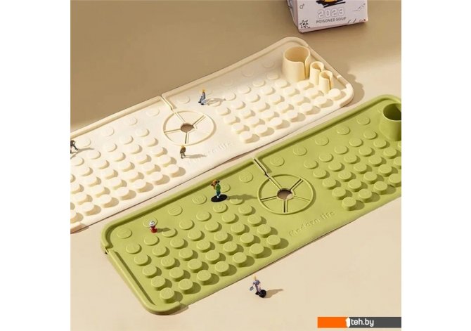 | Информация | - Изготовленный из мягкого и прочного TPR, этот коврик для раковины гарантирует комфорт и долговечность, а также простоту в уходе за вашей столешницей. - Уникальный наклонный дизайн с приподнятыми краями эффективно отводит воду, предотвращая разбрызгивание и снижая риск роста бактерий. - Креативный узор, вдохновленный клавиатурой, не только добавляет элегантности, но и помогает поддерживать вашу столешницу в сухом состоянии, предотвращая появление водяных пятен. - Наклонные опорные планки на дне обеспечивают надежное сцепление, предотвращая скольжение предметов и позволяя легко складывать коврик для экономии места при хранении. - Этот многофункциональный коврик идеально подходит для раковин в ванной, кухонных столешниц и различных поверхностей, обеспечивая защиту и организацию. - Не упустите возможность улучшить функциональность вашего пространства! |