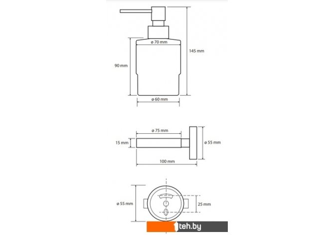 | Комплектация | дозатор жидкого мыла, крепеж, держатель |