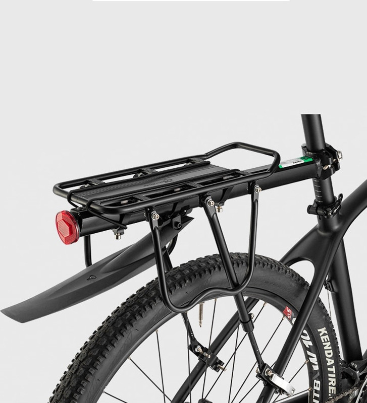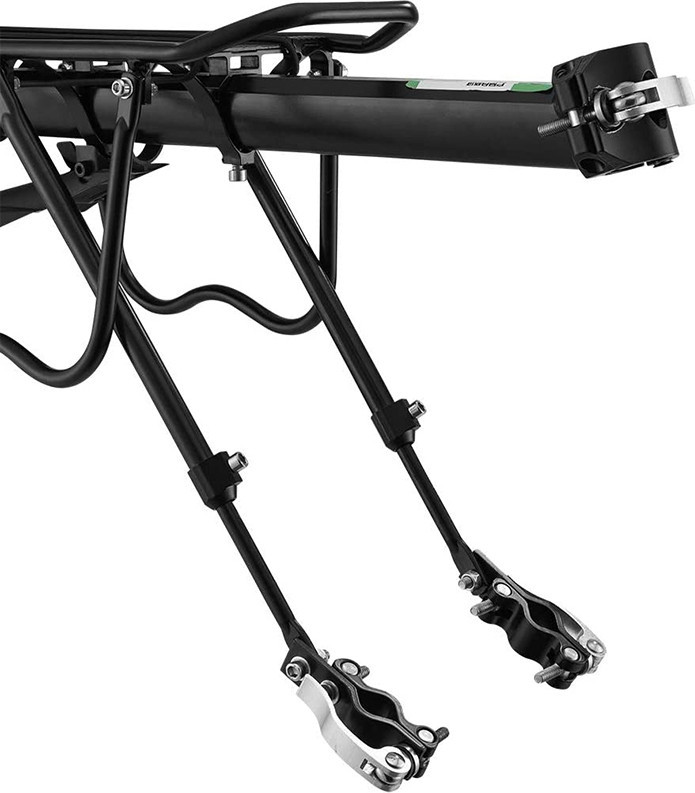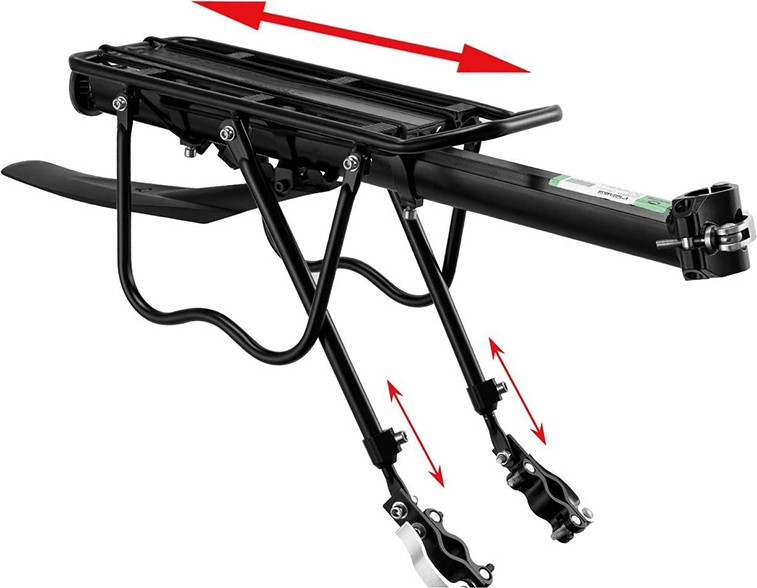 Информация | - Классическая конструкция багажника с грузовой площадкой и стойками - Надежное крепление в двух местах: на подседельный штырь и возле оси колеса - Подходит для любых типов велосипедов, так как стойки регулируются - Стойки не приварены, а прикручены на винты для лучшей выдерживаемости перегрузок - Встроенный брызговик и светоотражатель для безопасности - |