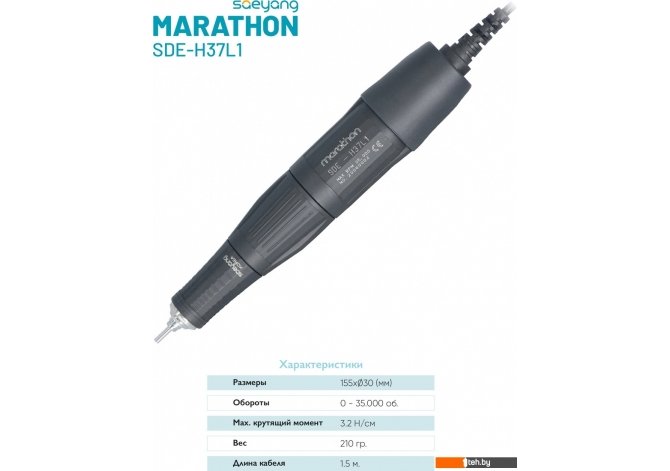 | Информация | - Аппарат для маникюра и педикюра Saeyang Marathon K-35 mini H37L1 51043 - идеальный выбор для профессионалов ногтевого сервиса. - Высокие характеристики, надежность и безупречное качество этого фрезера получили признание от профессионалов в более чем 100 странах мира. - Блок фрезера имеет мультивольтажную мощность и защиту от перегрузки, что делает его идеальным для мастеров маникюра. - Ручка SDE-H37L1 обеспечивает равномерное и плавное движение, даже при работе с тяжелыми материалами, такими как гель или акрил. - Система постоянного обдува ручки позволяет эффективно охлаждать двигатель, а замок Twist-Lock помогает быстро заменить фрезы. - Спиральный кабель удобен и не мешает во время работы, делая использование этого аппарата максимально комфортным. |