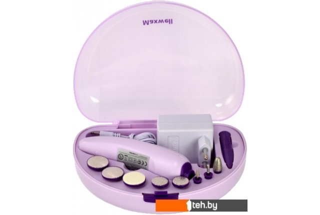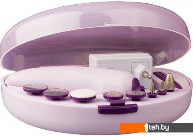 | Комплектация | - большая конусообразная насадка- цилиндрическая насадка- конусообразная насадка- малый диск для подпиливания (с мелкой насечкой)- малый диск для подпиливания (с крупной насечкой)- мягкий диск-насадка для полировки- диск-насадка (менее шероховатая) длямягкого удаления огрубевшей кожи- диск-насадка (более шероховатая) дляудаления огрубевшей кожи- лопатка для поднятия кутикулы- привод насадок- сетевой адаптер- футляр |