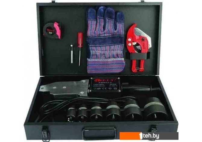 | Комплектация | -Сварочный аппарат для пластиковых труб- Металлический кейс- Руководство по эксплуатации-Насадки: 20 мм, 25 мм, 32 мм, 40 мм, 50 мм, 63 мм- Элементы крепежные- Отрезные ножницы- Измерительная рулетка- Термостойкие рукавицы- Подставка- Отвертка |