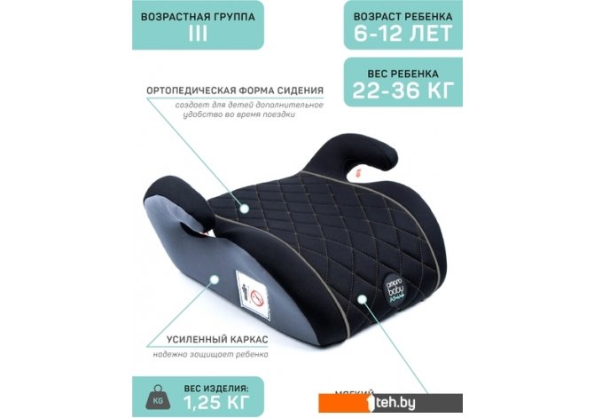 | Информация | Детское автокресло (бустер) Easy way Возрастная группа III, подходит для детей от 6 до 12 лет, весом от 22 до 36 кг. В основе детского автокресла (бустера) Easy way - усиленный каркас. Ортопедическая форма сидения автокресла для детей создает дополнительное удобство во время поездки. Увеличенное посадочное место обеспечивает удобство в поездке, как в летней, так и в зимней одежде. Правильная фиксация ремня безопасности, мягкий стеганый чехол. |