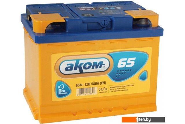 Если хотите купить автомобильный аккумулятор AKOM 6СТ-65VL (65 А·ч) то следует уточнить все параметры и габариты модели перед покупкой. Представленые характеристики на сайте 1teh.by могут отличаться от действительных или указанных производителем. Описание, фото товара и технические характеристики представлены для справки.