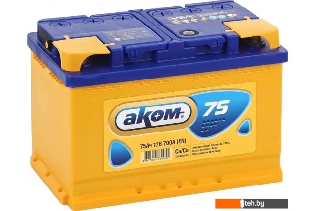 Если хотите купить автомобильный аккумулятор AKOM 6СТ-75VL R+ (75 А·ч) то следует уточнить все параметры и габариты модели перед покупкой. Представленые характеристики на сайте 1teh.by могут отличаться от действительных или указанных производителем. Описание, фото товара и технические характеристики представлены для справки.