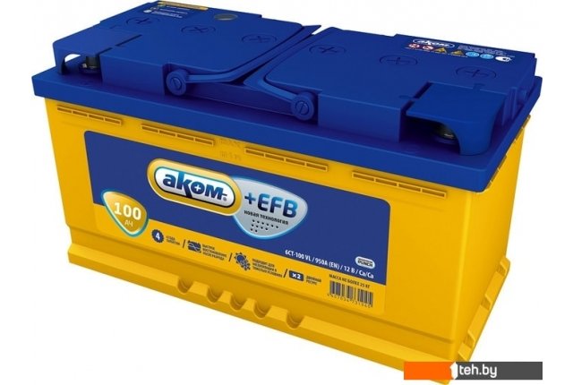 Фотографии, описание и технические характеристики модели Автомобильного аккумулятора AKOM +EFB 100e (100 А·ч) взяты из открытых источников, официального сайта производителя или представительства AKOM в Республике Беларусь.