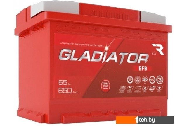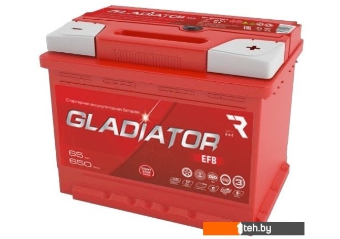 Фотографии, описание и технические характеристики модели Автомобильного аккумулятора Gladiator EFB 65 R+ (65 А·ч) взяты из открытых источников, официального сайта производителя или представительства Gladiator в Республике Беларусь.