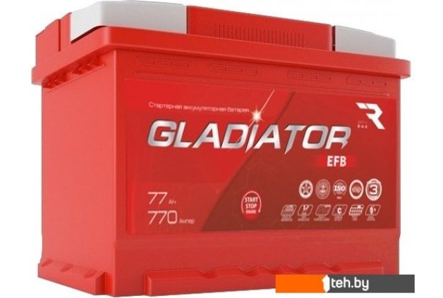 Фотографии, описание и технические характеристики модели Автомобильного аккумулятора Gladiator EFB 77 R+ (77 А·ч) взяты из открытых источников, официального сайта производителя или представительства Gladiator в Республике Беларусь.