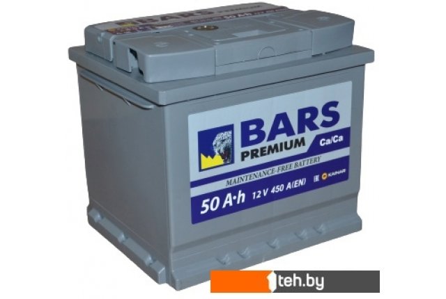 Если хотите купить автомобильный аккумулятор BARS Premium 50 R+ (50 А·ч) то следует уточнить все параметры и габариты модели перед покупкой. Представленые характеристики на сайте 1teh.by могут отличаться от действительных или указанных производителем. Описание, фото товара и технические характеристики представлены для справки.