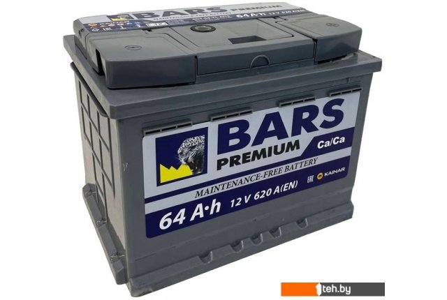 Если хотите купить автомобильный аккумулятор BARS Premium 64 R+ (64 А·ч) то следует уточнить все параметры и габариты модели перед покупкой. Представленые характеристики на сайте 1teh.by могут отличаться от действительных или указанных производителем. Описание, фото товара и технические характеристики представлены для справки.