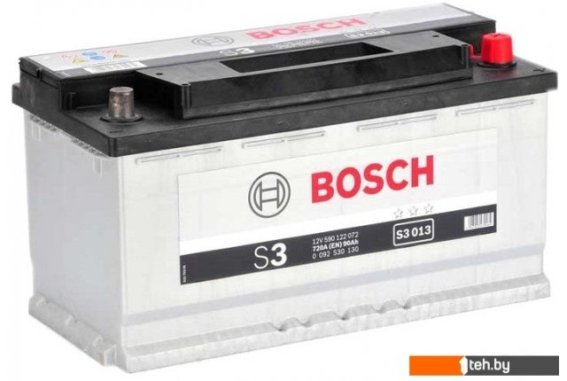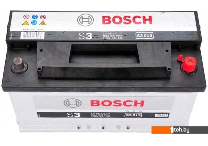 Фотографии, описание и технические характеристики модели Автомобильного аккумулятора Bosch S3 013 (590122072) 90 А/ч взяты из открытых источников, официального сайта производителя или представительства Bosch в Республике Беларусь.