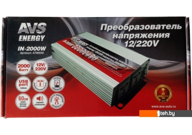 Фотографии, описание и технические характеристики модели автомобильного инвертора AVS Energy 12/220V IN-2000W взяты из открытых источников, официального сайта производителя или представительства AVS в Республике Беларусь.