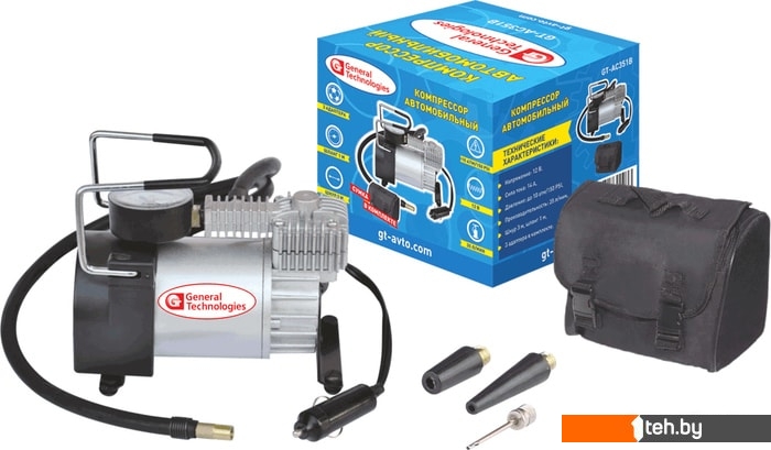 Фотографии, описание и технические характеристики модели автомобильного компрессора General Technologies GT-AC351B взяты из открытых источников, официального сайта производителя или представительства General Technologies в Республике Беларусь.