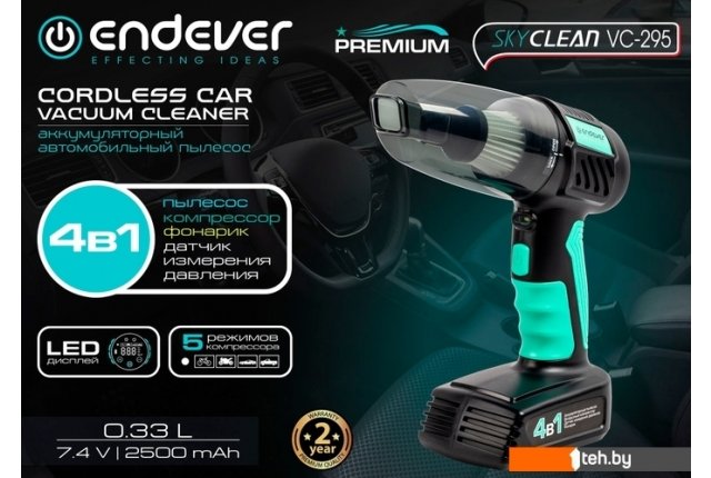 Фотографии, описание и технические характеристики модели пылесоса для авто Endever VC-295 взяты из открытых источников, официального сайта производителя или представительства Endever в Республике Беларусь.