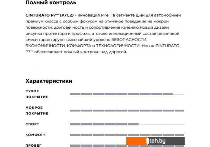 | Информация | ? Pirelli Cinturato P7 New (P7C2) - новинка в сегменте шин для автомобилей премиум класса. ? Особый фокус на отличное поведение на мокрой дороге, долговечность и сопротивление качению. ? Новый дизайн рисунка протектора и профиль, а также инновационный состав резиновой смеси. ? Гарантирует высочайший уровень безопасности, экономичности, комфорта и технологичности. ? Обеспечивает полный контроль над дорогой. ?? Маркировка P7C2 на боковых стенках и измененный дизайн боковин. |