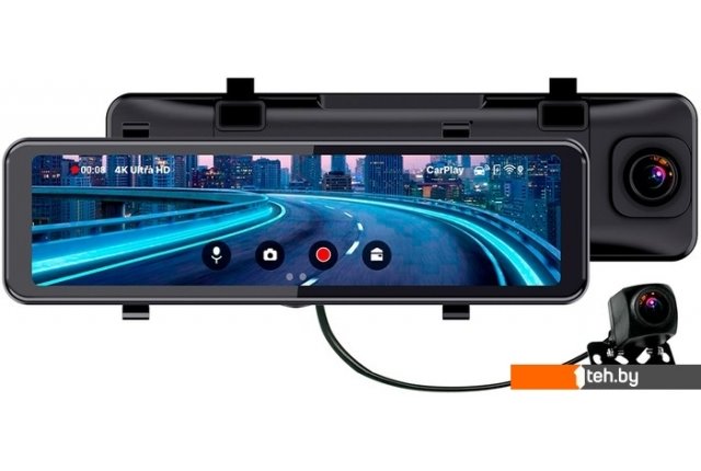 | Информация | TrendVision CarPlay Mirror – новинка 2023 года! 2-камерный автомобильный видеорегистратор-зеркало с качеством съёмки 4К или реальным 2К. Благодаря современной технологии "Apple CarPlay" и "Android Auto" можно транслировать приложения со смартфона прямо на большой сенсорный IPS экран устройства. Все это дополнено обширным классическим функционалом подобного вида устройств TrendVision и гибкой настройкой большого количества параметров. Ключевые особенности устройства: - Техологии "Apple CarPlay" и "Android Auto" (для транслирования приложений со смартфона на зеркало) - Функция "FM Transmitter" (для транслирования аудио на штатную аудиосистему авто) - Детальная съёмка в разрешении 4К или реальном 2К - Сенсорный IPS дисплей с диагональю ~11" - Широкоугольные объективы передней и задней камеры (150° + 140°) - Современный универсальный разъём питания - Type-C - Задняя камера Full HD в комплекте (с парковочными линиями) - Автоматическое переключение на заднюю камеру при заднем ходе автомобиля (при подключении к бортовой системе) - Помощь в разрешении ДТП и защита от кражи (G-сенсор, режим парковки) - Отображение ситуации на дороге (и спереди, и сзади) во весь экран - Функция "Time-Lapse" для записи объемных промежутков времени с минимальным объемом занимаемой памяти - Функция "ScreenSaver" с таймером отключения дисплея (для использования аппарата в качестве зеркала заднего вида) - Гибкая настройка параметров яркости, угла обзора камеры, разрешения съёмки и т.д. |