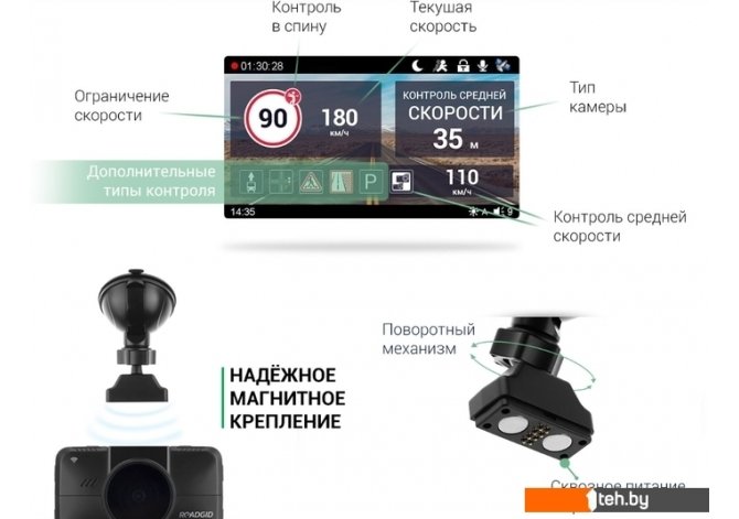 | Информация | Современное устройство с превосходной ночной съемкой на Sony IMX327. Краткие и уникальные голосовые оповещения о камерах контроля. Одновременная запись на 2 камеры в разрешение FullHD. Включайте помощника парковки одной клавишей. Встроенный Wi-Fi позволит просмотреть, через официальное приложение, любую запись на смартфоне или планшете, а также поделиться ей через соцсети и мессенджеры, обновить базу камер. |