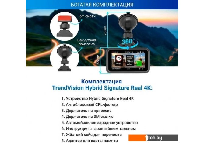 | Информация | ? TrendVision Hybrid Signature Real 4K - новинка 2023 года с реальным разрешением 4К Ultra HD ! ? Инновационное комбо-устройство 3 в 1: видеорегистратор с камерой на матрице Sony, сигнатурный радар-детектор, GPS-информатор с функцией SpeedCam, имеющий самые актуальные и полные базы камер/радаров. ? Всё это - на сенсорном IPS дисплее 3", с возможностью управления, настройки и просмотра видеороликов как на экране устройства, так и на смартфоне - через мобильное приложение за счёт встроенного Wi-Fi модуля. ? Премиальная комплектация, помимо прочего, включает в себя надёжный тканевый кейс, антибликовый CPL-фильтр и 2 вида крепления. ?? У аппаратов последней ревизии разъём Type-C Ключевые особенности устройства: • Не интерполированное, реальное разрешение видео 4К Ultra HD, за счёт современно 8-Мп матрицы Sony Starvis IMX415; • Высокий потенциал дополнения/совершенствования ПО • Сенсор жестов • Современный умный кодек H.265 • Сигнатурный радарный модуль 3-го поколения, исключающий всевозможные ложные срабатывания, с максимальной дальностью детектирования и точностью определения; • На экране оповещения от GPS-информера со "SpeedCam" - системы предупреждений о радарах, камерах и всевозможных вариациях контроля средней скорости; • Настройка, управление и просмотр видео как на сенсорном 3" экране устройства, так и на смартфоне - через мобильное приложение; • Премиальная комплектация с антибликовым CPL-фильтром, двумя видами крепления и качественным фирменным кейсом для аппарата в комплекте |
