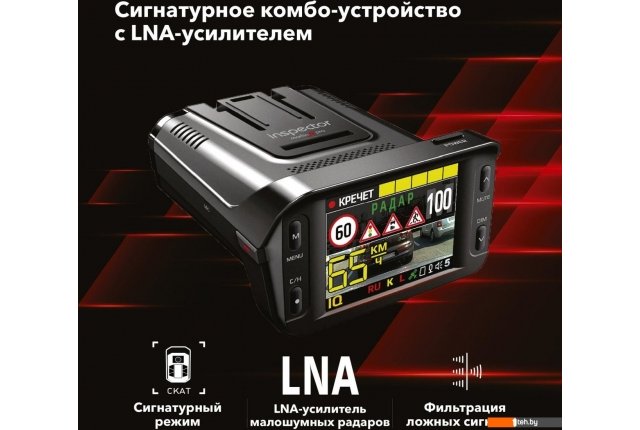 | Информация | • Модуль LNA (Low Noise Amplifier) - это усилитель сигналов радарных комплексов К-диапазона и лазерных измерителей скорости. Результатом его применения является увеличенная дистанция приема сигналов радаров, включая установленных "в спину". А также уверенный прием сигналов новых маломощных радарных комплексов, распространяющихся как на территории РФ, так и странах ближайшего зарубежья (Узбекистан, Казахстан, и др.); • Рупорная антенна нового поколения - разработана специально для использования с модулем LNA для повышения чувствительности детектирования; • Усовершенствованный лазерный приемник - разработан специально для использования с модулем LNA, обладает увеличенной дистанцией детектирования, что играет ключевую роль при приеме сигналов лазерных измерителей скорости; • Сигнатурная технология предназначена для снижения количества ложных оповещений в К-диапазоне с помощью распознавания сигналов радаров и сопоставления их с заложенной в память устройства обновляемой библиотекой сигнатур; • Полноцветный ЖК-экран с диагональю 2,4" высокого разрешения для комфортного отображения обширной информации из базы радаров и камер, включающей в себя ограничение скорости, тип радаракамеры, расстояние до места установки и объекты контроля. Читать дальше |