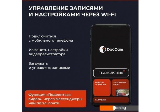 Фотографии, описание и технические характеристики модели видеорегистратора DaoCam Mirror Wi-Fi взяты из открытых источников, официального сайта производителя или представительства DaoCam в Республике Беларусь.