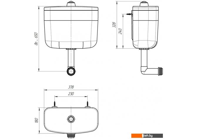 | Информация | Благодаря входящей в комплект пластиковой трубе возможно применение в качестве бачка для чаши Генуя или напольного приставного унитаза на средней высоте. Установка бачка: сделать разметку на стене между отверстиями. Просверлить отверстия и установить кронштейны с помощью дюбелей. Установить бачок на кронштейны и несколько осадить к низу для плотной посадки на кронштейны. Вставить манжету в корпус клапана. При необходимости укоротить трубу по размеру. Вставить колено соединительное в манжету бачка на 20-25 мм. На свободную сторону колена надеть манжету и вставить в отверстие унитаза. |