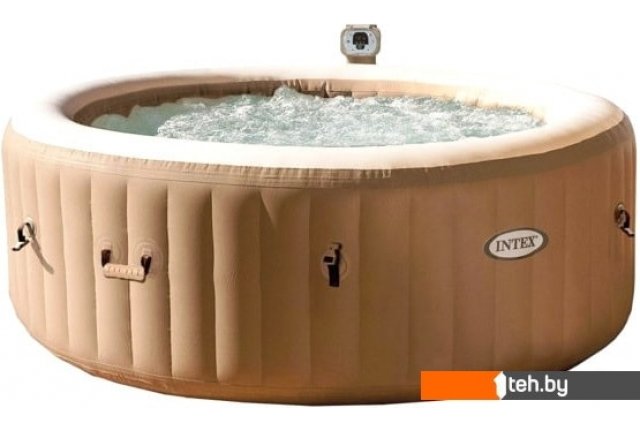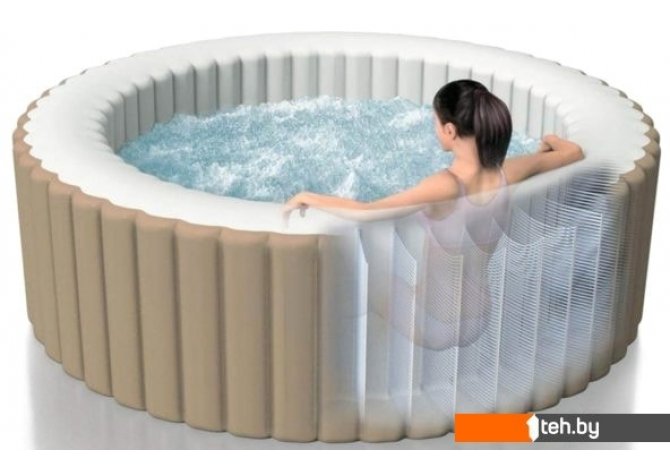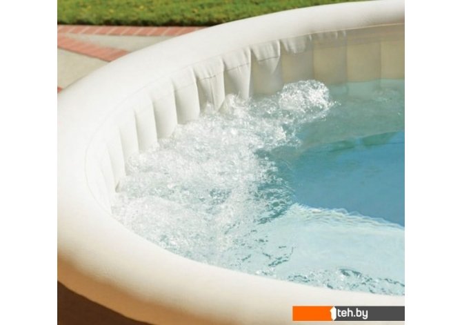 | Информация | Надувное джакузи Intex с фильтрующим насосом, аэрационными форсунками, нагревателем, встроенным смягчителем воды и панелью управления. |